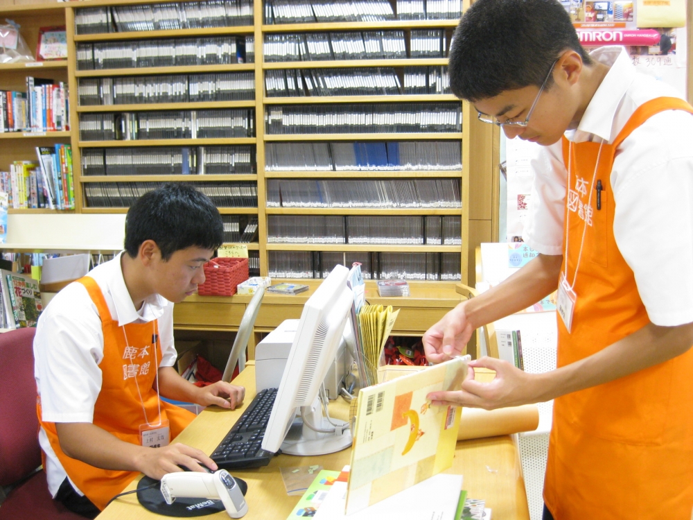 7月26日、27日の二日間、山鹿市内の小学校4~6年生の児童のみなさんが図書館のスタッフの一人として、色々なお仕事をしてくれました。