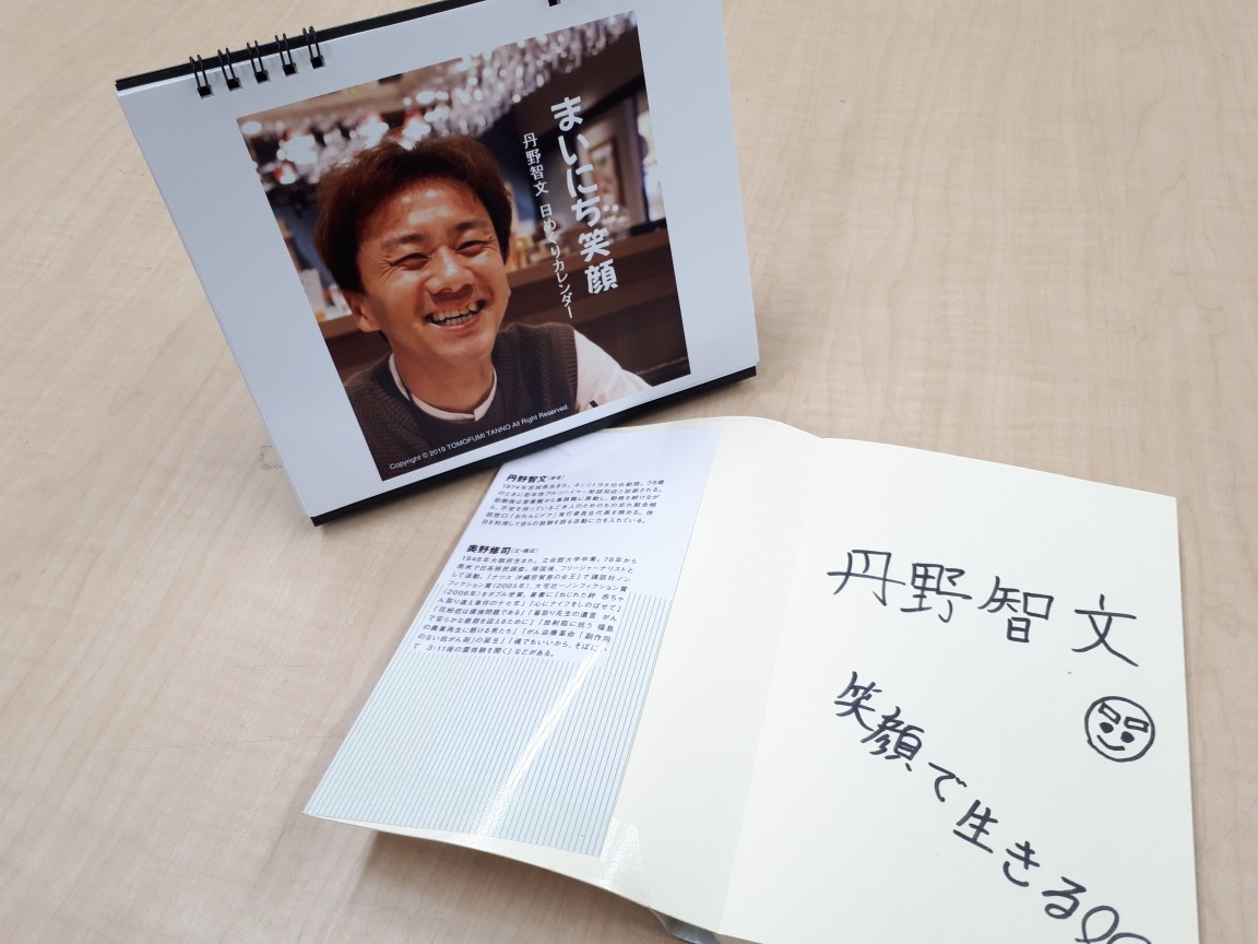 丹野氏著書『丹野智文 笑顔で生きる』にサインをいただきました。ぜひ、ご来館の際にはご一読ください。