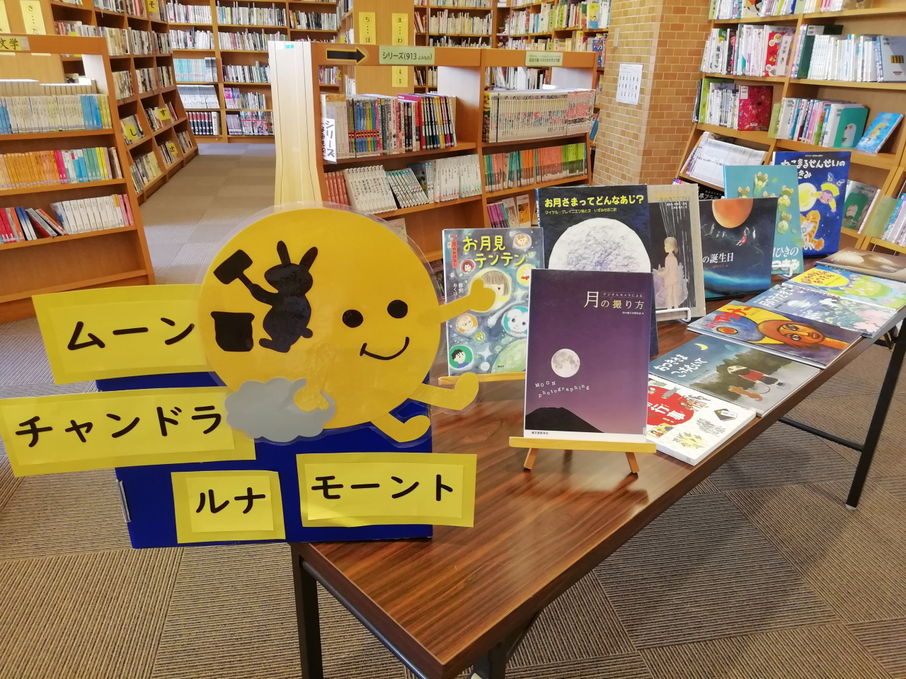 鹿央図書室ではお月さまやお月見の本を展示してます。