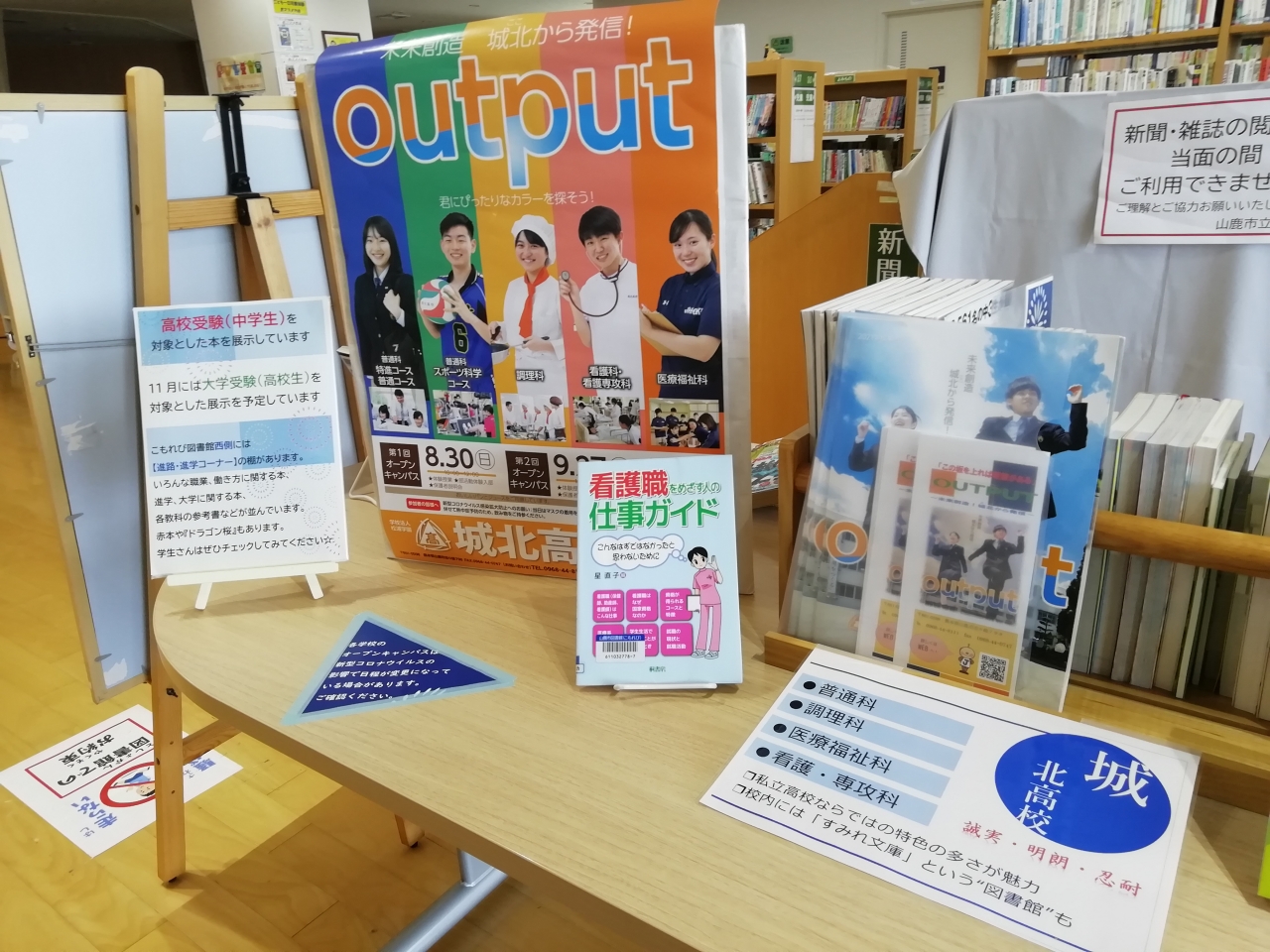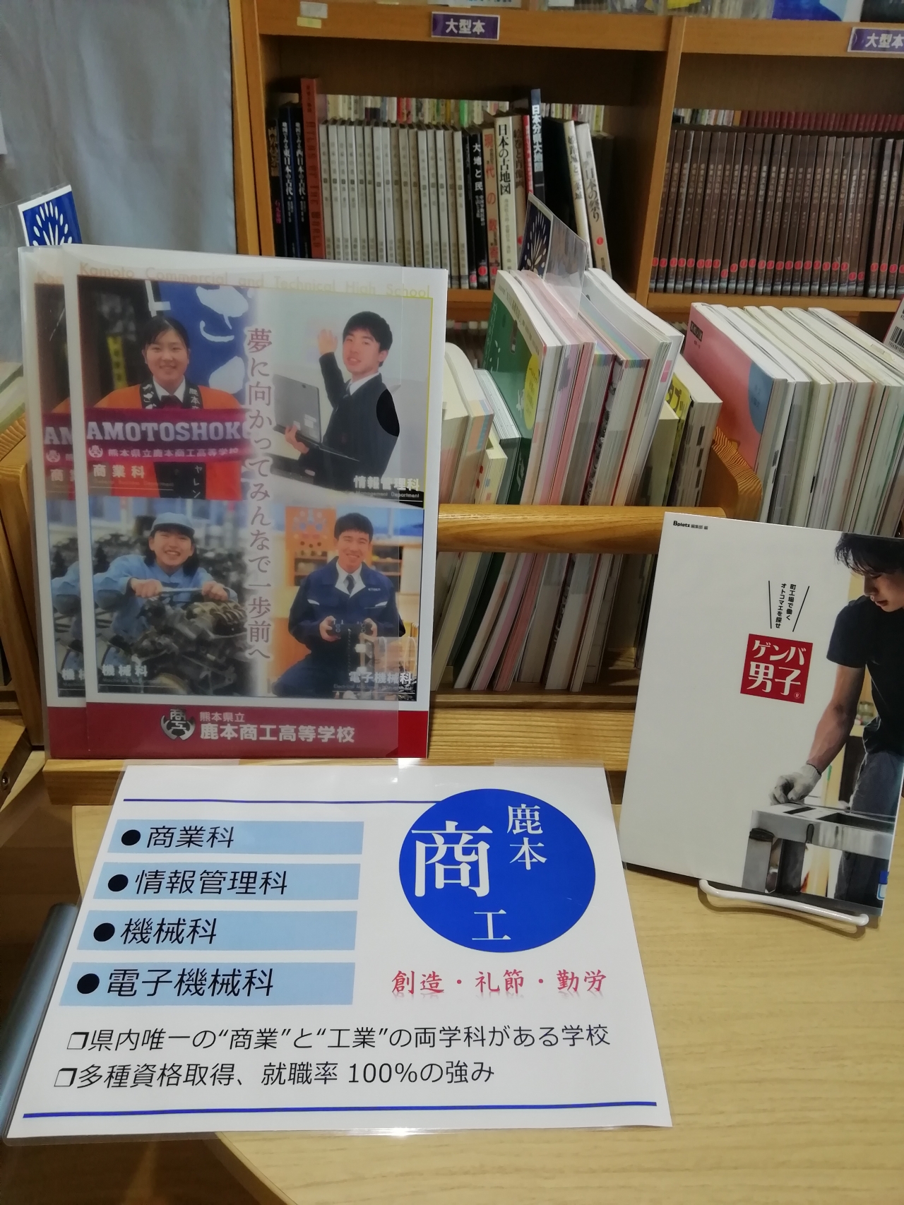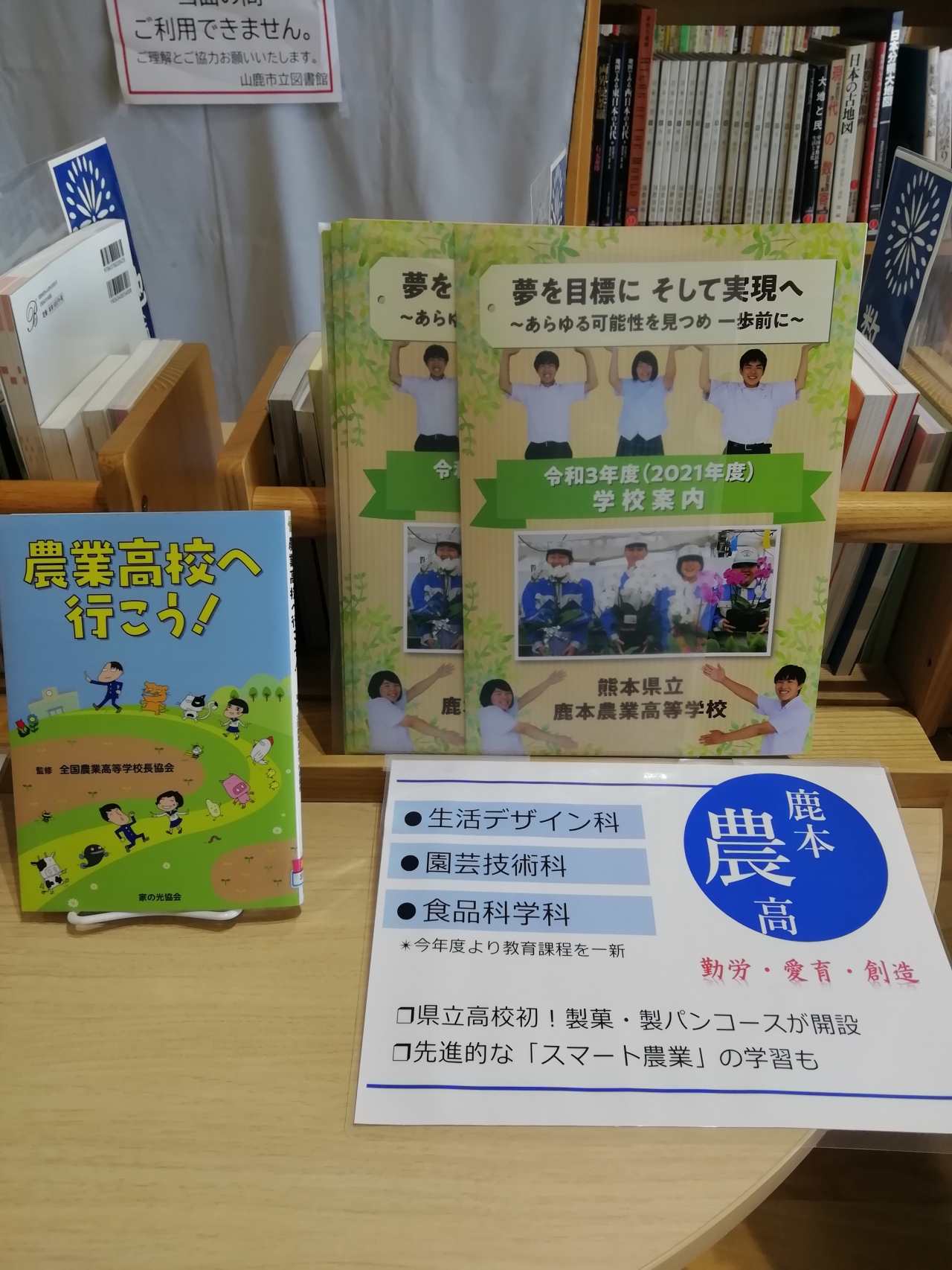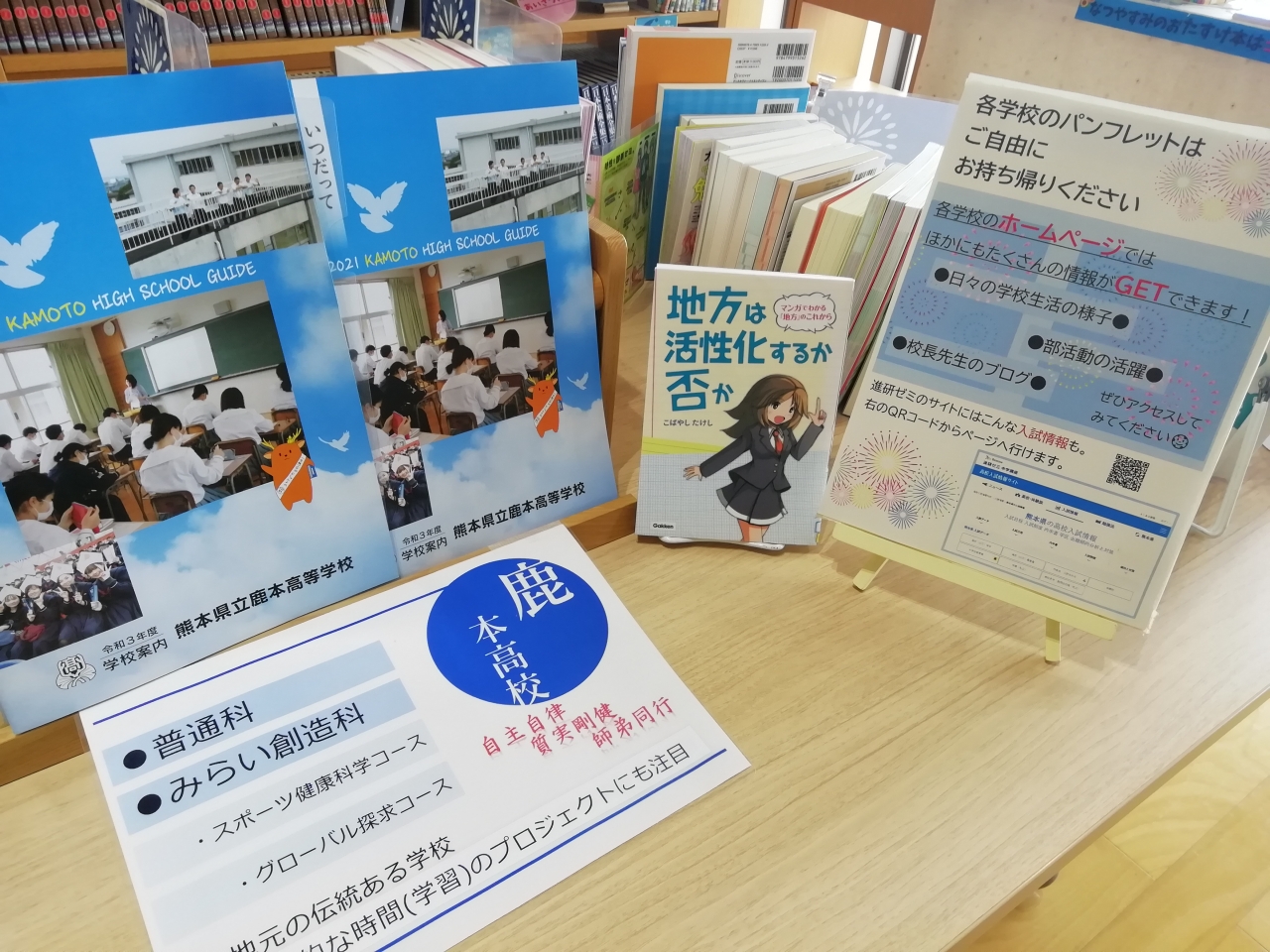 また、山鹿市内の4高校にご協力いただき、各校の学校案内もあわせて展示しました。