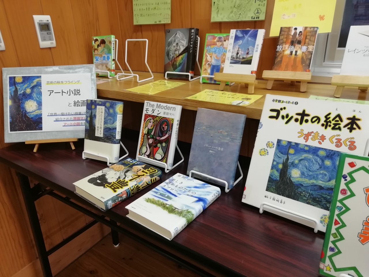 原田マハさんの“アート小説”と絵画の本を展示中の鹿北図書室で、