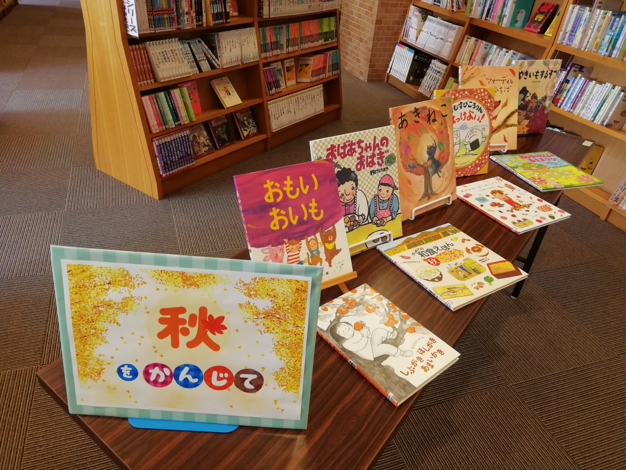 ハロウィンから【秋を感じる本】の展示に変わっています。