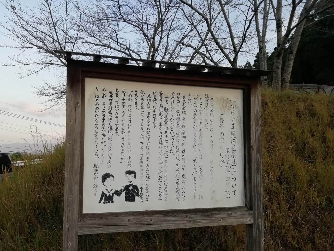 米野岳中学校の近くにある「郷原坂」もおはなしに出てくる場所のひとつです。
