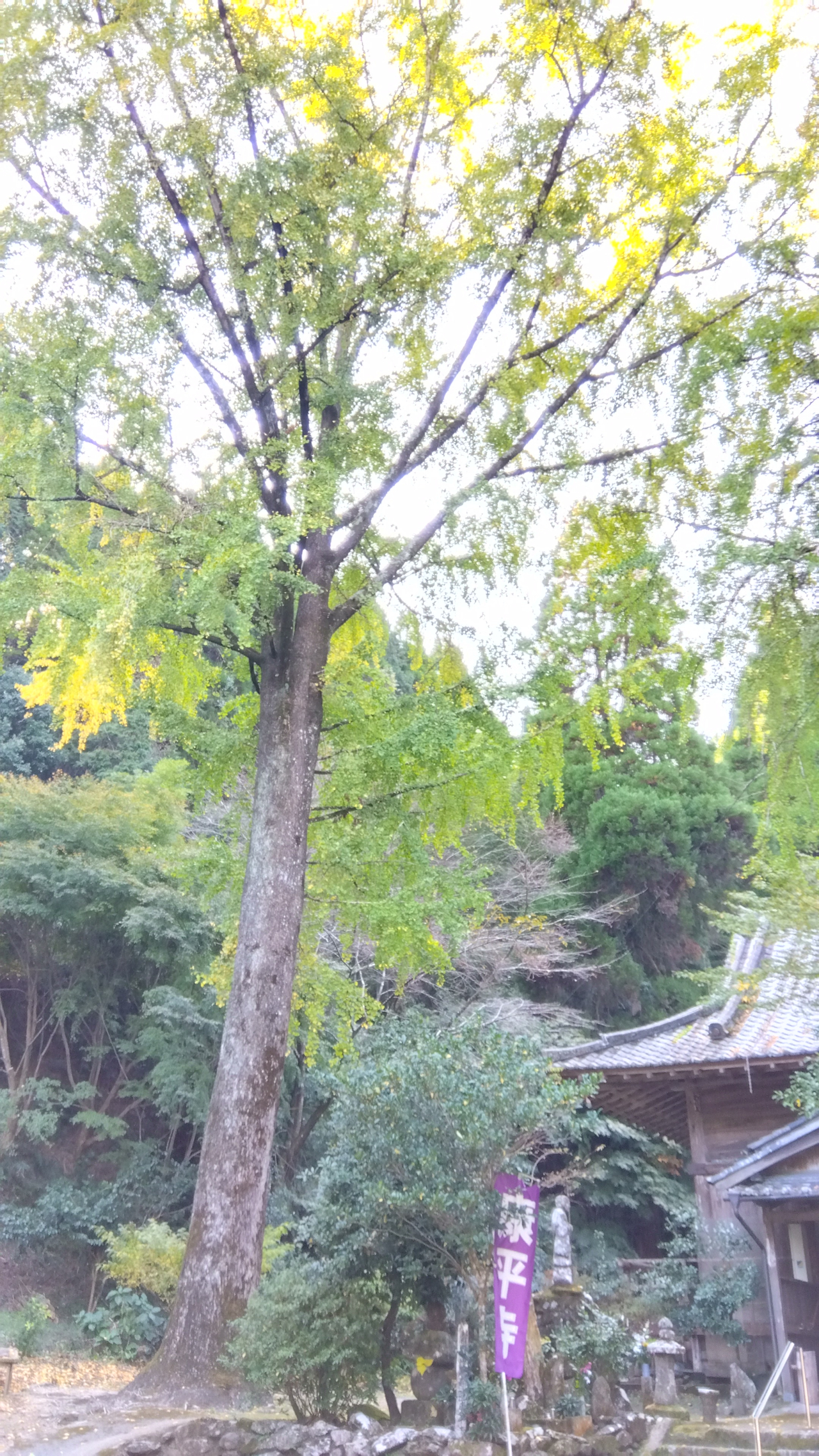 鹿央町霜野にある康平寺のイチョウも色づき始めています。