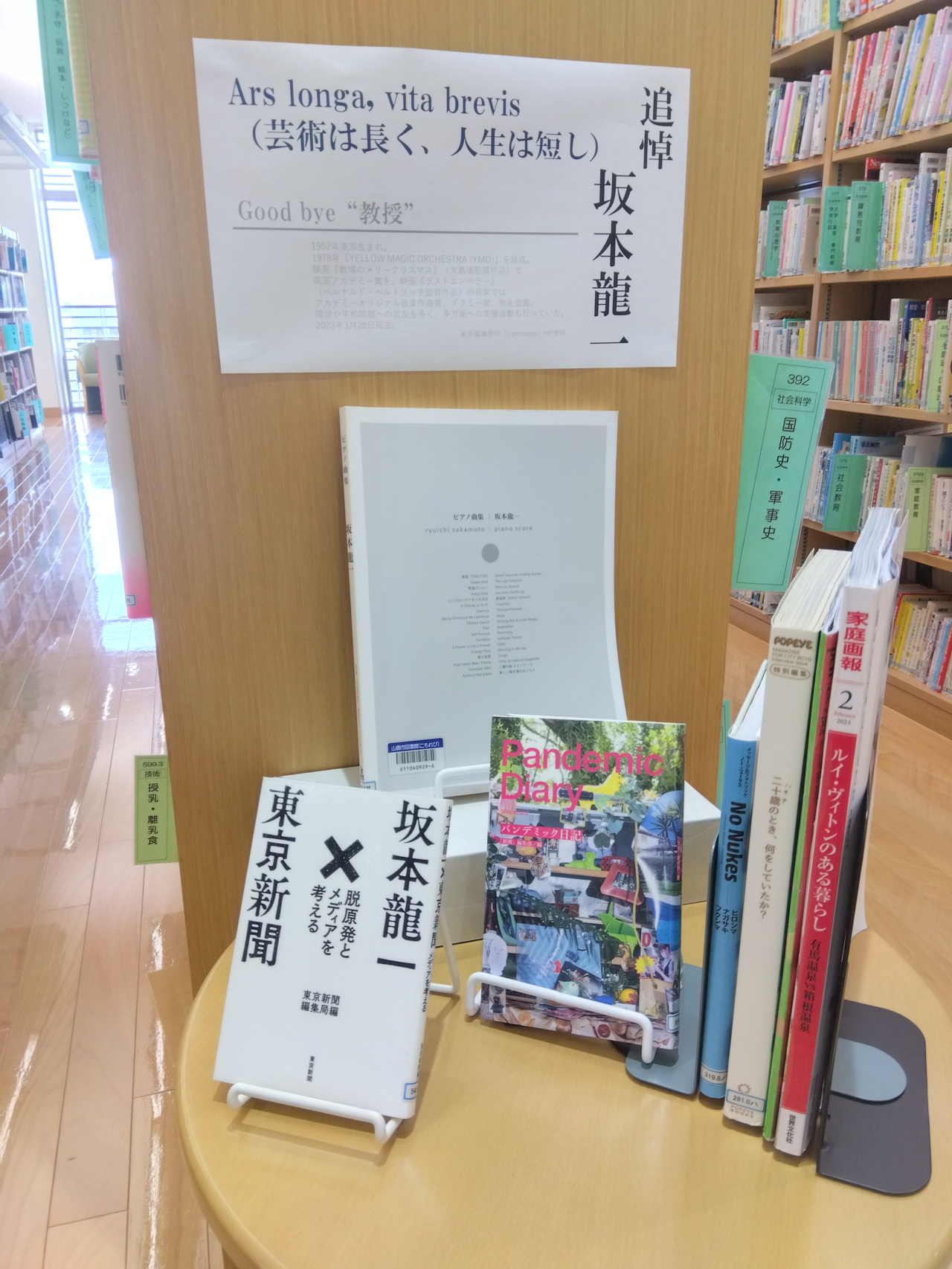 ”教授”の名で親しまれた坂本龍一氏の追悼コーナー。幅広い分野での功績は書籍としても残っています。