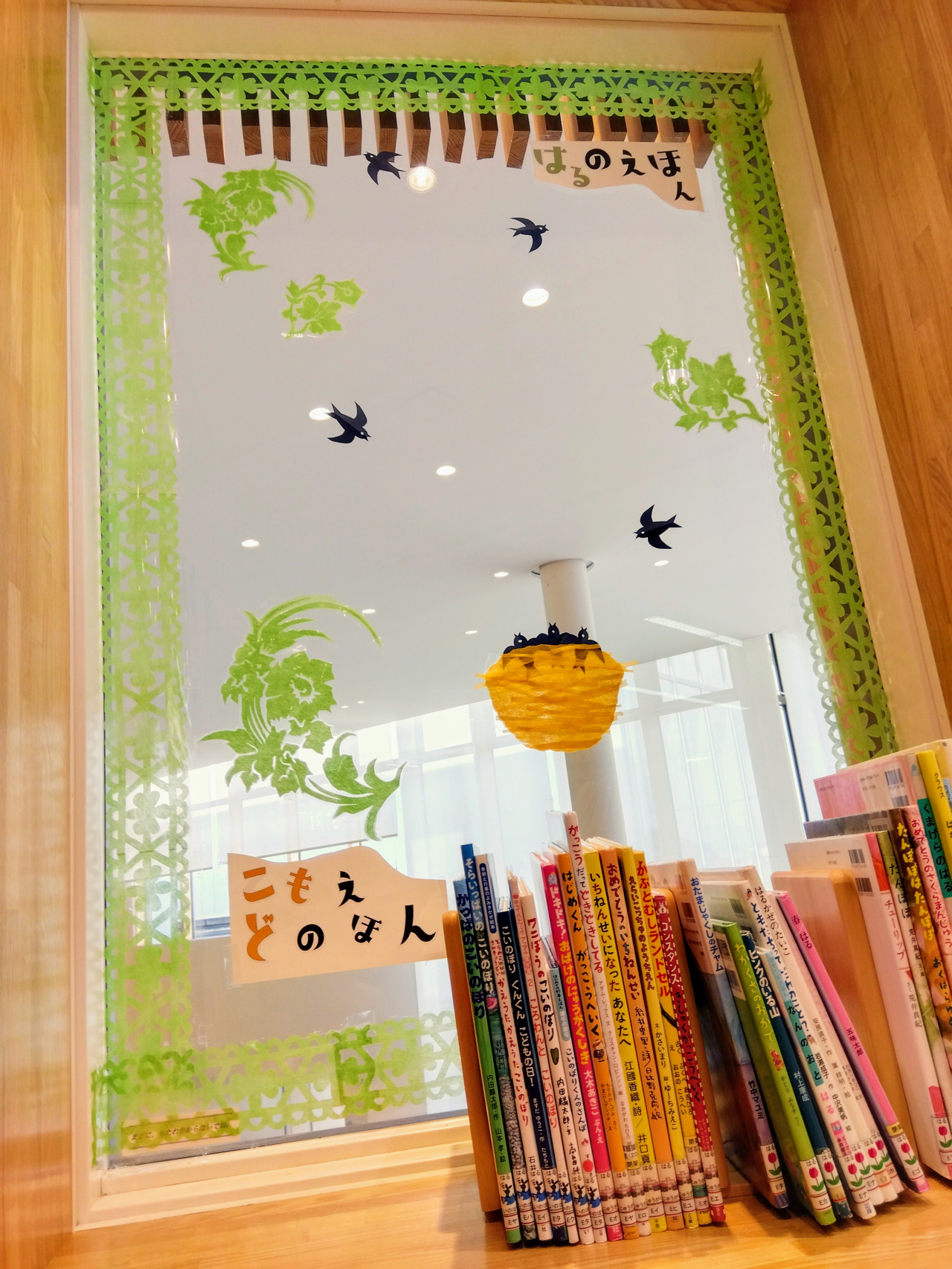 絵本コーナーにも春がやってきています。つばめの赤ちゃんの鳴き声が聞こえてきそうです。