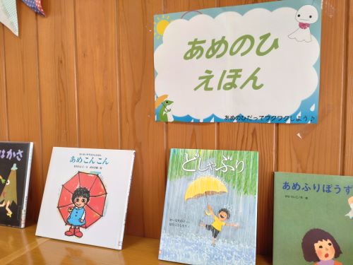 先月と、どこが変わっているのかお分かりいただけますでしょうか。えっ、あんまり変わってないように見える?(笑)いいえ、安心してください!梅雨の時期にあわせて雨の絵本や、時計の日、父の日等の絵本を増量しています。この時期だからこそ読んで欲しい絵本ばかりです。
