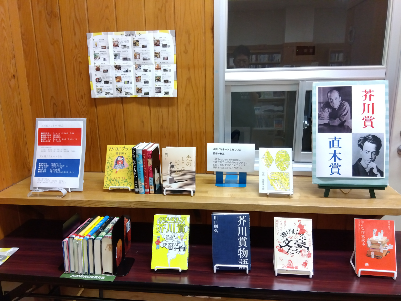 ノミネート作家の著書と過去の両賞受賞作品を展示しています。