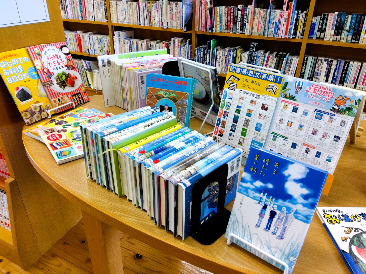 鹿北図書室でも夏休みにきっと役に立つ本を特集しています。