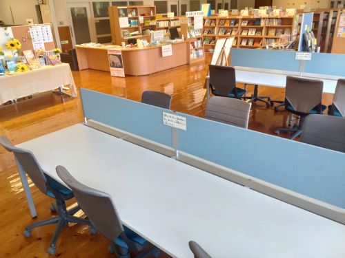 図書室前のテーブルと椅子はどなたでも利用が出来ます。