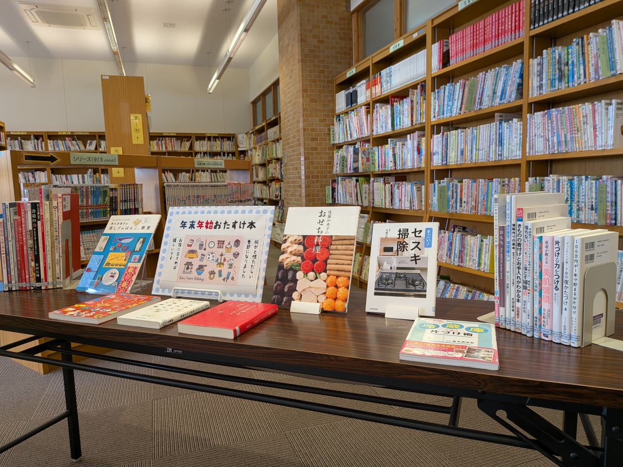 この時期定番の大掃除の方法やおせち料理、贈り物等の本を展示しています。