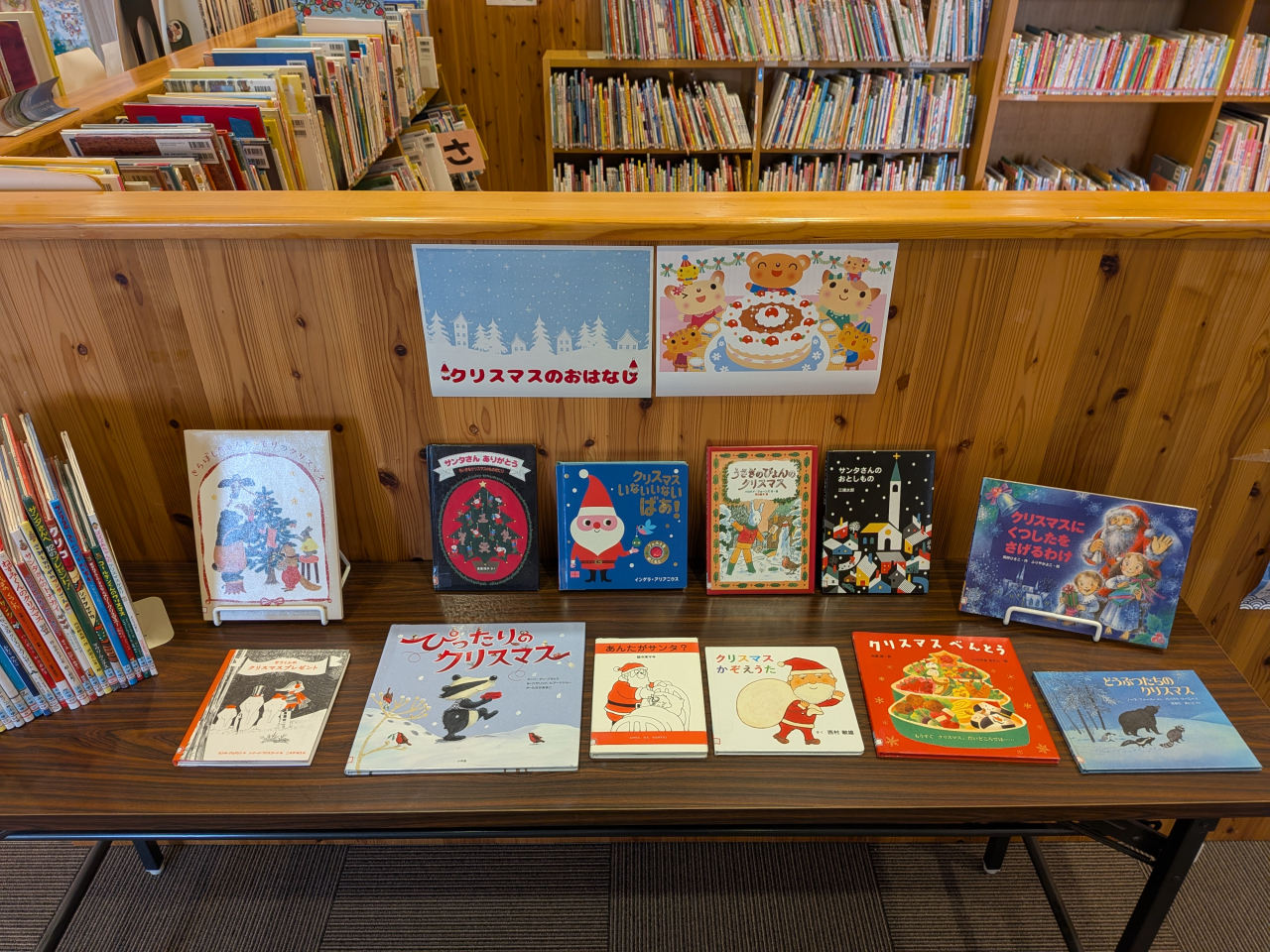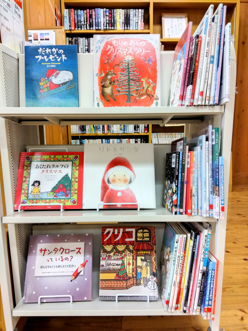 メインコーナーでは、今年も様々なクリスマスの絵本を集めて展示中です。