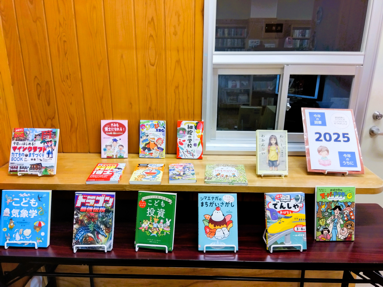 2025年に出版された鹿北図書室の児童書を展示しています。
