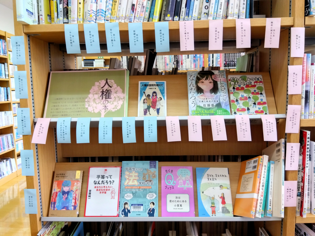 装飾してある「やさしい日本語で読む世界人権宣言」(谷川俊太郎訳)にも注目してください。