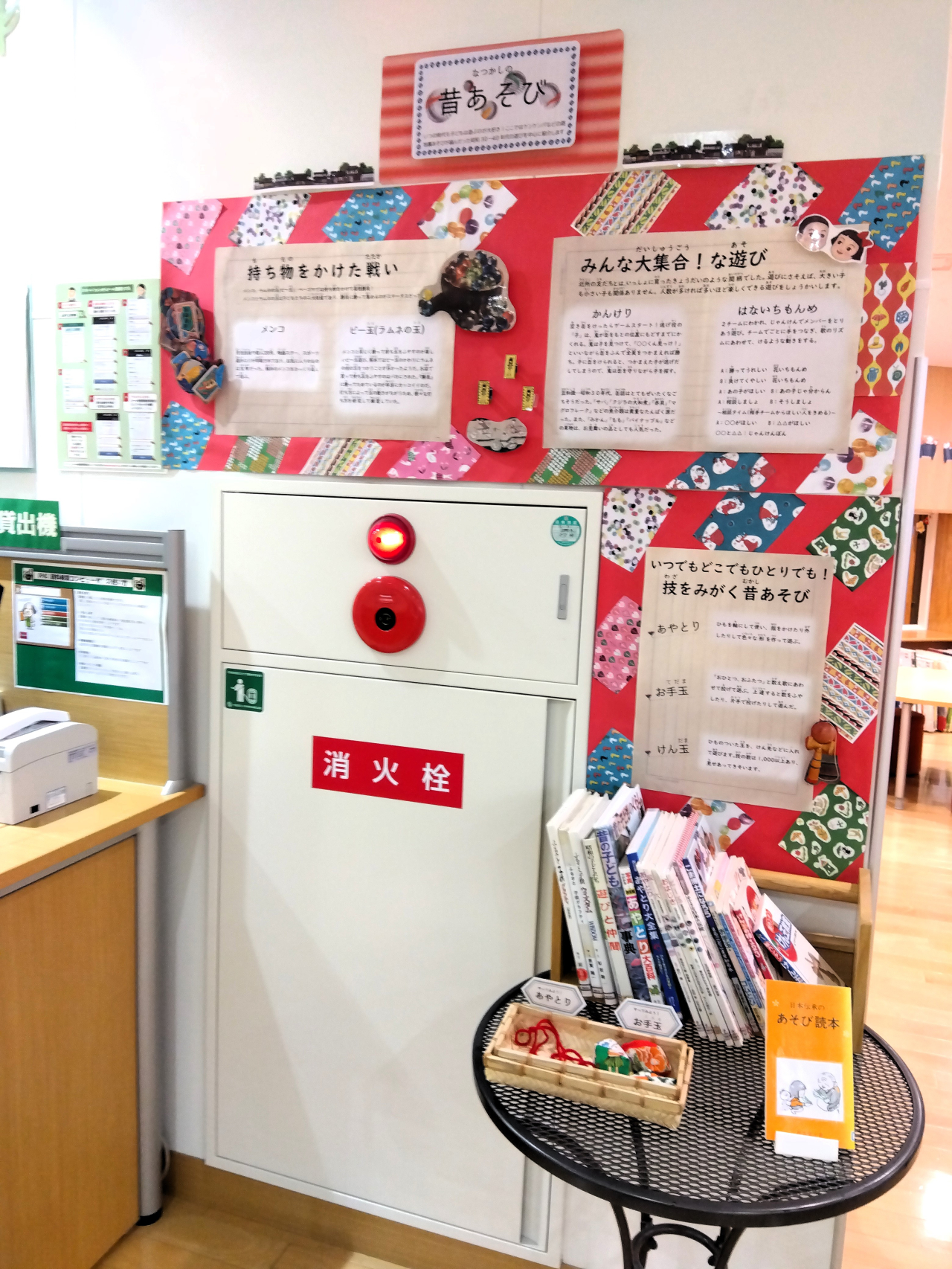 図書館にケンケンパが出現!昔あそびの本を特集しています。