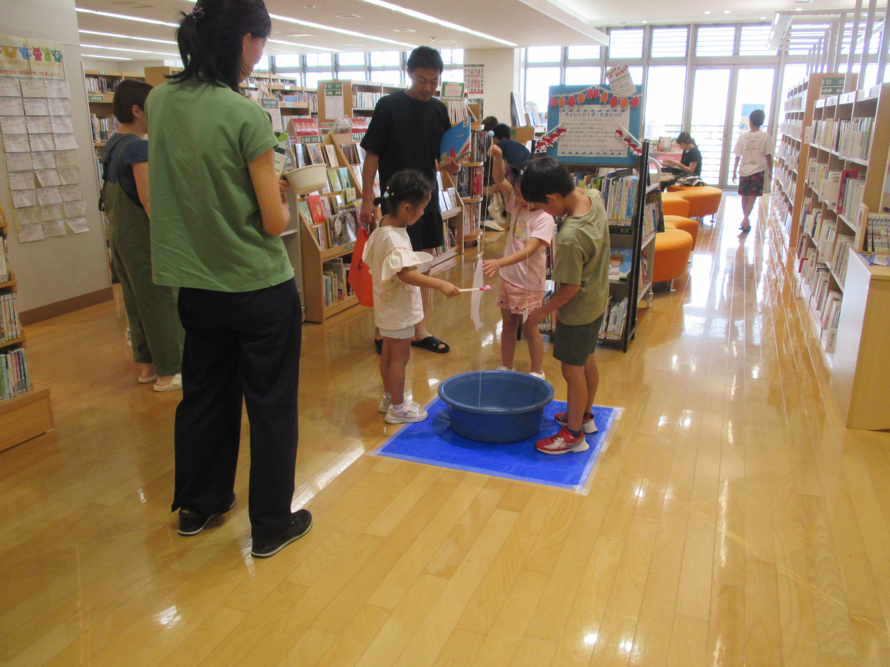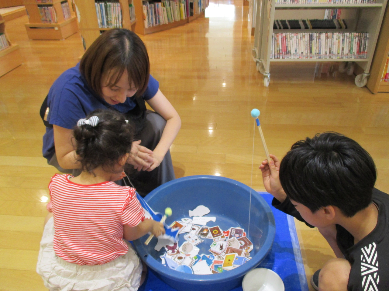 突如とあらわれたえほんつりの漁場?こもれび図書館が釣り場に!?