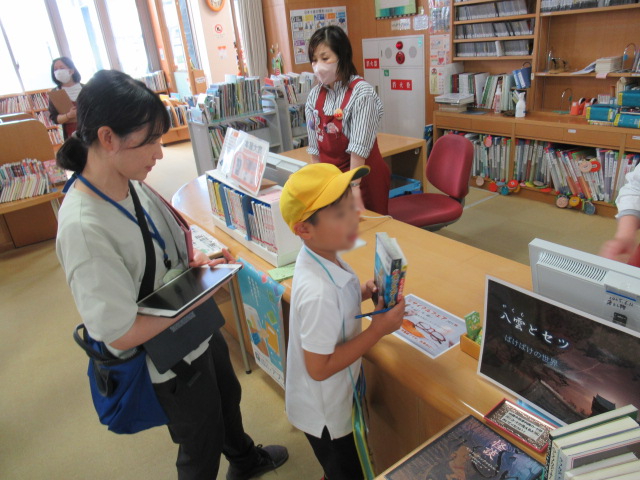 見学後、好きな本を選んでカウンターで貸出を行いました。